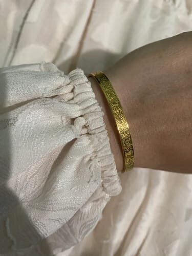 السوار مصنوع من الفولاذ المقاوم للصدأ مع طلاء ذهبي أو فضي لضمان المتانة والجمال.
